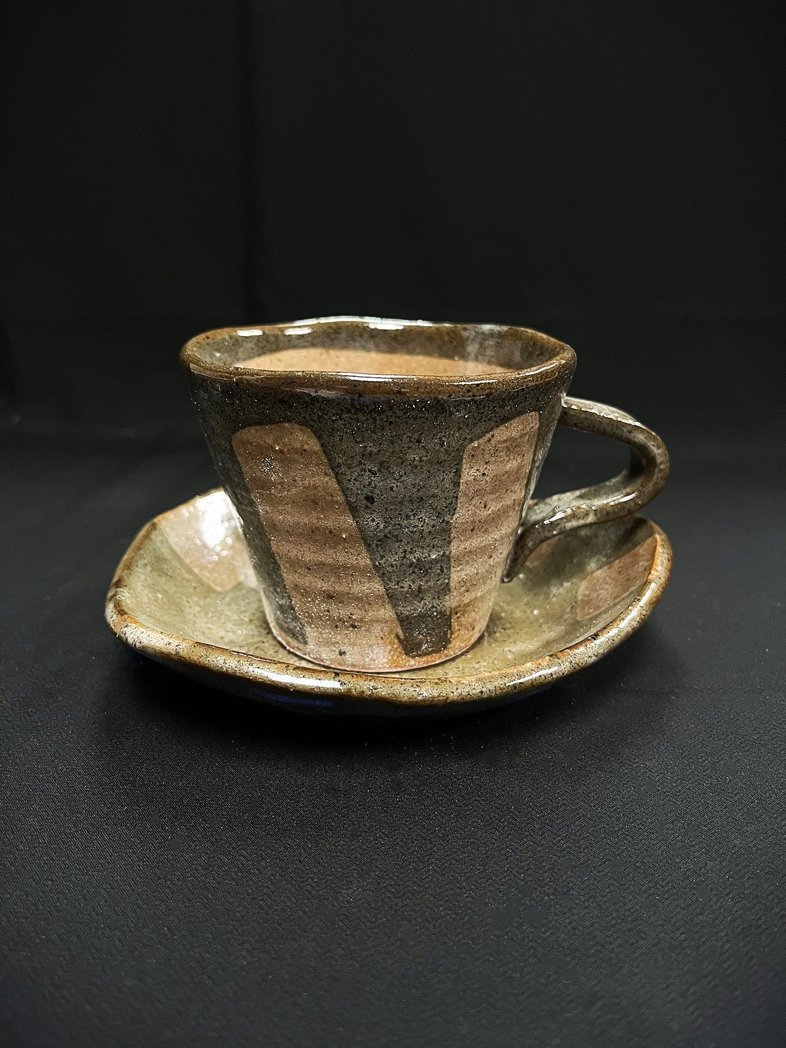 * The irregular spots are a natural result of the interaction between the minerals in the glaze and the clay body during firing.